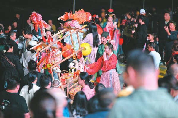 2024年国庆技能,自贡就以一种突出的姿色,点亮了夜晚的热枕与虚幻。10月1日晚,“夜游釜溪”毛家坝船埠,摇身一酿成为一场穿越时空之旅的发轫。“NPC互动演艺”举止在这里灿艳启幕,盐工、商贾、街头卖艺者轮番登场,收复了昔日自贡盐运船埠的盛景。令东说念主惊喜的是,旅客不再是旁不雅者,他们参与到剧情中,与NPC进行亲密互动,千里浸在那段海潮壮阔的盐运历史中。