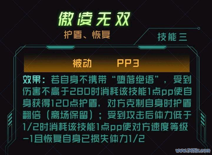 “苟活流”必备。不带“退步绝语”时,受伤害≤280就能触发120护盾(克制系翻倍),血量低于1/2还能降对方速率并回血。我打高难PVE相通用这个,比如面临克制邪灵系的精灵,靠护盾扛伤,回血加减慢逐步磨,生计材干径直拉满。